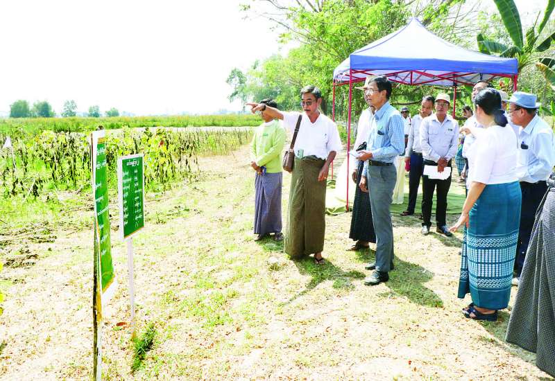 သမဝါယမနှင့် ကျေးလက်ဖွံ့ဖြိုး ရေးဝန်ကြီးဌာန ဒုတိယဝန်ကြီး ဦးမြင့်စိုးသည် တာဝန်ရှိသူများနှင့်အတူ ယနေ့နံနက်ပိုင်းတွင် ဧရာဝတီတိုင်းဒေသကြီး ဝါးခယ်မမြို့နယ် ကြာဖြူကျေးရွာရှိ ရွှေကြာဖြူ(၁) စိုက်ပျိုးထုတ်လုပ် ရေးသမဝါယမအသင်းမှ အသင်းသားတောင်သူ ဦးဝင်းဗိုလ်၏ နေကြာ၊ မြေပဲစိုက်ခင်းများအနက် ရုရှားသဘာဝမြေဩဇာ အသုံးပြု၍ စိုက်ပျိုးထားသော ဆင်း ရွှေကြာ-၂ နေကြာမျိုး တစ်ဧက ရိတ်သိမ်းပြီးစီးမှုကို ကြည့်ရှုအားပေးသည်။