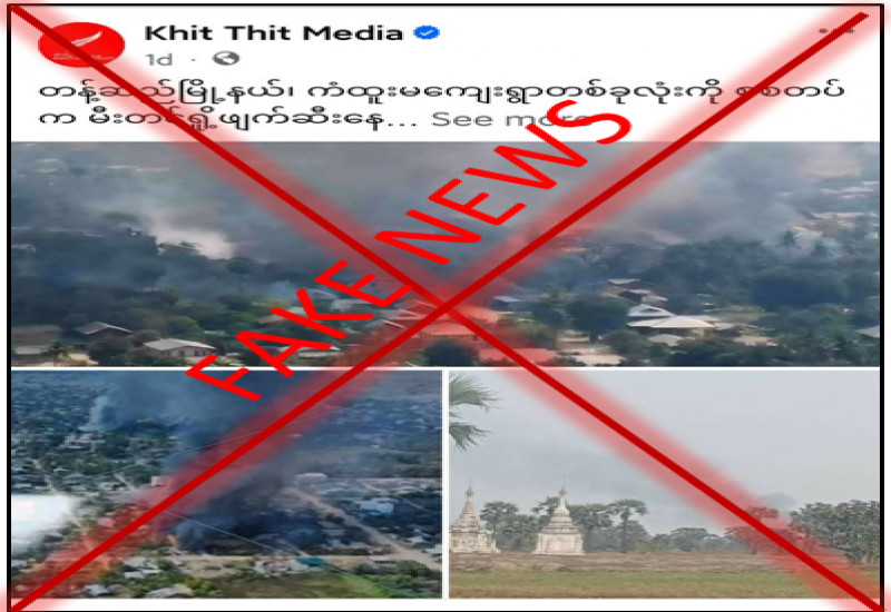 စစ်ကိုင်းတိုင်းဒေသကြီး၊ တန့်ဆည်မြို့နယ်၊ ကံထူးမကျေးရွာကို ဖေဖော်ဝါရီ ၂၃ ရက်နေ့တွင် လုံခြုံရေးတပ်ဖွဲ့ဝင်များက မီးရှို့ဖျက်ဆီးနေကြောင်း သတင်းတု၊ သတင်းအမှားများအား တရားမဝင်ပြည်ဖျက်မီဒီယာ Khit Thit က မဟုတ်မမှန်ရေးသားဖြန့်ဝေနေသည်ကို တွေ့ရှိရသည်။