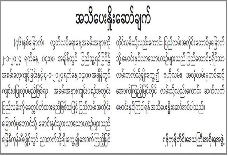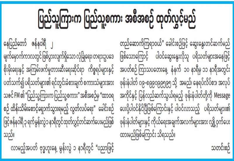 ပြည်သူ့ကြားက ပြည်သူ့စကား အစီအစဉ် ထုတ်လွှင့်မည်