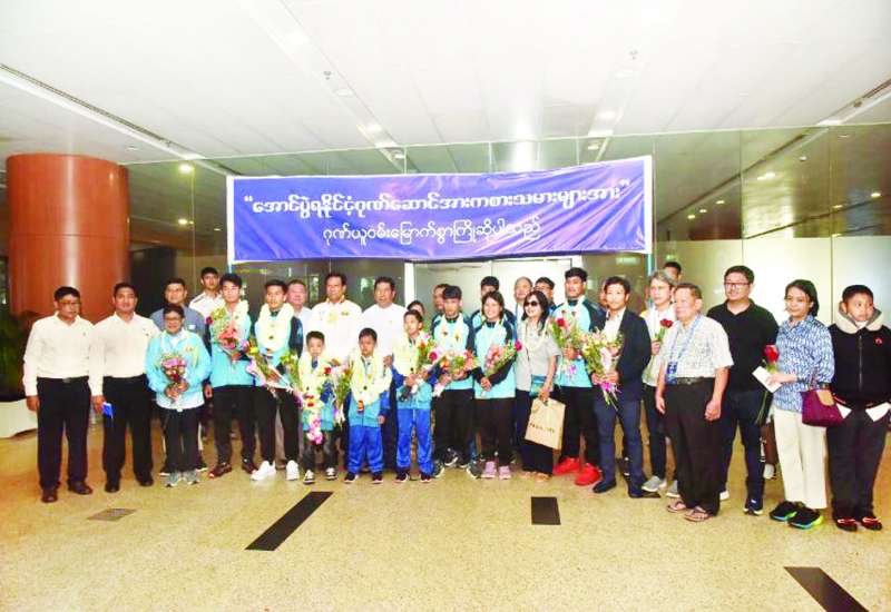 မလေးရှားနိုင်ငံ ပီနန်မြို့တွင် ဒီဇင်ဘာ ၉ ရက်မှ ၁၀ ရက်အထိကျင်းပသော PENANG INVITA-TIONAL CHAMPIONSHIP 2023 ဂျူဒိုပြိုင်ပွဲ၌ ဝင်ရောက်ယှဉ်ပြိုင်ခဲ့သော မြန်မာဂျူဒိုအားကစားအဖွဲ့သည် ယနေ့မွန်းလွဲ ၁ နာရီ ၁၅ မိနစ်တွင် မလေးရှားနိုင်ငံပီနန်မြို့မှ ရန်ကုန်မြို့သို့ပြန်လည်ရောက်ရှိလာရာ ရန်ကုန်တိုင်းဒေသကြီး အားကစားနှင့် ကာယပညာကော်မတီဥက္ကဋ္ဌ တိုင်းဒေသကြီးဥပဒေချုပ် ဦးဌေးအောင်၊ မြန်မာနိုင်ငံဂျူဒိုအဖွဲ့ချုပ်ဥက္ကဋ္ဌ ဦးထွန်းထွန်းနှင့်ဒုတိယဥက္ကဋ္ဌများ၊ အားကစားနှင့်ကာယပညာဦးစီးဌာန၊ အားကစားနှင့်ကာယပညာသိပ္ပံ (ရန်ကုန်) ကျောင်းအုပ်ကြီး၊ ရန်ကုန်တိုင်းဒေသကြီး အားကစားနှင့် ကာယပညာဦးစီးဌာနညွှန်ကြားရေးမှူးနှင့် တာဝန်ရှိသူများ၊ မြန်မာနိုင်ငံဂျူဒိုအဖွဲ့ချုပ်မှ တာဝန်ရှိသူများ၊ အားကစားနှင့်ကာယပညာသိပ္ပံ (ရန်ကုန်) ကျောင်းမှကျောင်းသားကျောင်းသူများ၊ မိဘဆွေမျိုးများကပန်းစည်းများ၊ အိုးစည် ဒိုးပတ်များဖြင့် ရန်ကုန် အပြည်ပြည်ဆိုင်ရာ လေဆိပ်၌ ဝမ်းပန်းတသာကြိုဆို ကြသည်။