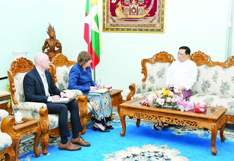 ပြည်ထောင်စုအစိုးရအဖွဲ့ရုံးဝန်ကြီးဌာန (၂) ပြည်ထောင်စုဝန်ကြီး ဦးကိုကိုလှိုင်သည် China Foundation for Rural Development (CFRD) ၏ အမှုဆောင်ညွှန်ကြားရေးမှူး Mr. Chen Hongtao ဦးဆောင်သည့် ကိုယ်စားလှယ်အဖွဲ့အား ယနေ့နံနက် ၁၁ နာရီခွဲတွင် နေပြည်တော်ရှိ ရုံးအမှတ် (၄၁) ပြည်ထောင်စုအစိုးရအဖွဲ့ရုံးဝန်ကြီးဌာန (၂) ၌ လက်ခံတွေ့ဆုံသည်။