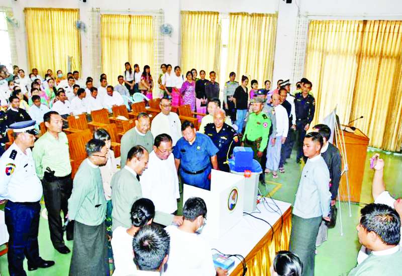ပြည်ထောင်စုရွေးကောက်ပွဲကော်မရှင်သည် မြန်မာအီလက်ထရောနစ်မဲပေးစက် (MEVM) ဖြင့် မဲပေးခြင်း အသိပညာပေးလုပ်ငန်းအား ဆောင်ရွက်လျက်ရှိရာ ယနေ့မှစ၍ ရန်ကုန်တိုင်းဒေသကြီးနယ်မြေ ခရိုင်လေးခုရှိ မြို့နယ်လေးမြို့နယ်တို့တွင် မဲဆန္ဒရှင်ပြည်သူများ မြန်မာအီလက်ထရောနစ်မဲပေးစက်ဖြင့် လက်တွေ့စမ်းသပ်မဲပေးလေ့လာခြင်းအစီအစဉ်ကို တစ်ပြိုင်တည်းဆောင်ရွက်ခဲ့သည်။