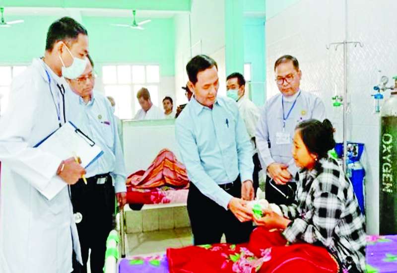 ကျန်းမာရေးဝန်ကြီးဌာန ဒုတိယဝန်ကြီး ပါမောက္ခဒေါက်တာအေးထွန်းသည် ကုသရေးဦးစီးဌာန တာဝန်ရှိသူများနှင့်အတူ ယနေ့နံနက်ပိုင်းတွင် မန္တလေးတိုင်းဒေသကြီး ကျောက်ပန်းတောင်းမြို့ ပြည်သူ့ဆေးရုံနှင့် လက်ပံပြားတိုက်နယ်ဆေးရုံတို့သို့ ရောက်ရှိပြီး လူနာများအား အားပေးစကားပြောကြားကာ စမ်းသပ်ကြည့်ရှု၍ ဆေးကုသမှုဆိုင်ရာ အကြံပြုပြီး ဆေးရုံအတွင်း၊ အပြင် လှည့်လည်ကြည့်ရှုကာ မြို့နယ်ကုသရေးဦးစီးဌာနမှူး၊ တိုက်နယ်ဆရာဝန်၊ သူနာပြုများ၊ ကျန်းမာရေးဝန်ထမ်းများနှင့် တွေ့ဆုံပြီး လိုအပ်ချက်များ ဖြည့်ဆည်းဆောင်ရွက်ပေးသည်။