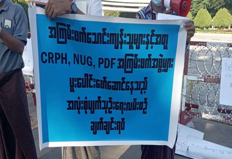 ပြည်ထောင်စုနယ်မြေ၊ နေပြည်တော်၊ ဇမ္ဗူသီရိမြို့နယ်၊ သပြေကုန်းရပ်ကွက်၊ မြို့တော်ခန်းမရှေ့ရှိ ပျဉ်းမနား-တောင်ညိုကားလမ်းမ၌ ယမန်နေ့ ညနေပိုင်းက အလုံးစုံပျက်သုဉ်းရေး လုပ်ဆောင်နေသည့် အကြမ်းဖက်အဖွဲ့အစည်းများအား ဆန့်ကျင်ရှုတ်ချပွဲ ပြုလုပ်ခဲ့ကြောင်း သိရသည်။