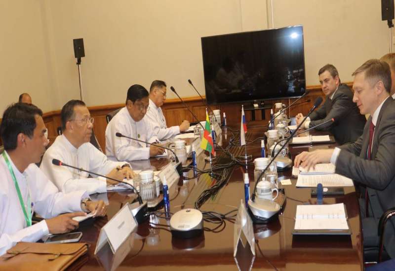 ရင်းနှီးမြှုပ်နှံမှုနှင့် နိုင်ငံခြားစီးပွားဆက်သွယ်ရေးဝန်ကြီးဌာန ပြည်ထောင်စုဝန်ကြီး ဒေါက်တာကံဇော်နှင့် စက်မှုဝန်ကြီးဌာန ပြည်ထောင်စုဝန်ကြီး ဒေါက်တာချာလီသန်းတို့သည် ရုရှားဖက်ဒရေးရှင်း နိုင်ငံစက်မှုနှင့် ကုန်သွယ်ရေးဝန်ကြီးဌာန၊ ဒုတိယဝန်ကြီး မစ္စတာအယ်လ်ဘတ်ခရီမော့ဗ် ဦးဆောင်သည့် ကိုယ်စားလှယ်အဖွဲ့အား ယနေ့မွန်းလွဲ ၁ နာရီခွဲတွင် ရင်းနှီးမြှုပ်နှံမှုနှင့် နိုင်ငံခြားစီးပွားဆက်သွယ်ရေးဝန်ကြီးဌာန ရုံးအမှတ်(၁)၌ လက်ခံတွေေ့ဆုံသည်။