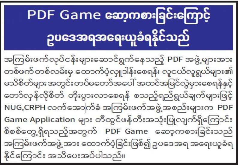 တရားမဝင်ကုန်သွယ်မှုတိုက်ဖျက်ရေး ဦးဆောင်ကော်မတီ၏ ကြီးကြပ်ကွပ်ကဲမှုဖြင့် တရားမဝင်ကုန်သွယ်မှုများကို ဥပဒေနှင့်အညီ ထိရောက်စွာ တားဆီးအရေးယူနိုင်ရေး ဆောင်ရွက်လျက်ရှိရာ နိုဝင်ဘာ ၂၆ ရက်တွင် ပဲခူးတိုင်းဒေသကြီး တရားမဝင်ကုန်သွယ်မှု တိုက်ဖျက်ရေးအထူးအဖွဲ့၏ စီမံခန့်ခွဲမှုဖြင့် တာဝန်ကျပူးပေါင်းအဖွဲ့များက စစ်ဆေးမှုများဆောင်ရွက်ခဲ့ရာ ညောင်ခါးရှည် X-Ray စက် စစ်ဆေးရေးဂိတ်၌ မြဝတီမြို့မှ ရန်ကုန်မြို့သို့ မောင်းနှင်လာသော ယာဉ်တစ်စီးပေါ်မှ တရားဝင်စာရွက်စာတမ်း အထောက်အထားတင်ပြနိုင်ခြင်းမရှိသည့် Envelope စာအိတ် ၅၀,၀၀၀ အပါအဝင် ကုန်ပစ္စည်းလေးမျိုး (ခန့်မှန်းတန်ဖိုးငွေကျပ် ၅,၂၅၀,၀၀၀)နှင့် အဆိုပါပစ္စည်းများ တင်ဆောင်လာသည့် Hyundai Bus တစ်စီး (ခန့်မှန်းတန်ဖိုးငွေကျပ် ၂၅,၀၀၀,၀၀၀) စုစုပေါင်း ခန့်မှန်းတန်ဖိုးငွေကျပ် ၃၀,၂၅၀,၀၀၀ ကို သိမ်းဆည်းရမိခဲ့ပြီး အကောက်ခွန် လုပ်ထုံးလုပ်နည်းများနှင့်အညီ အရေးယူဆောင်ရွက်လျက်ရှိသည်။