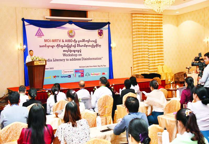 ပြန်ကြားရေးဝန်ကြီးဌာန မြန်မာ့အသံနှင့်ရုပ်မြင်သံကြားနှင့် အာရှ-ပစိဖိတ်ဒေသတွင်း ရုပ်/သံလွှင့်အဖွဲ့အစည်း (Asia-Pacific Institute for Broadcasting Development- AIBD) တို့ပူးပေါင်းပြီး သတင်းမှားများ ကိုင်တွယ်ဖြေရှင်းရန် သတင်းအချက်အလက် သိနားလည်မှုဆိုင်ရာ အလုပ်ရုံဆွေးနွေးပွဲ “Workshop on Media Literacy to address disinformation” ပိတ်ပွဲအခမ်းအနားကို ယနေ့ ညနေ ၄ နာရီခွဲတွင် နေပြည်တော် Horizon Lake View Hotel, State Meeting Room 2 ခန်းမတွင် ကျင်းပသည်။