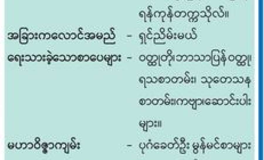 “ကံ့ကော်ပွင့်ရာ xx ငုဝါပွင့်ရာ xx စိန်ပန်းပွင့်ရာ xx တက္ကသိုလ်ကျောင်းတော်မှာလေ”