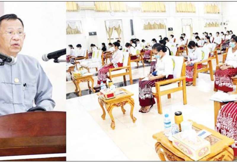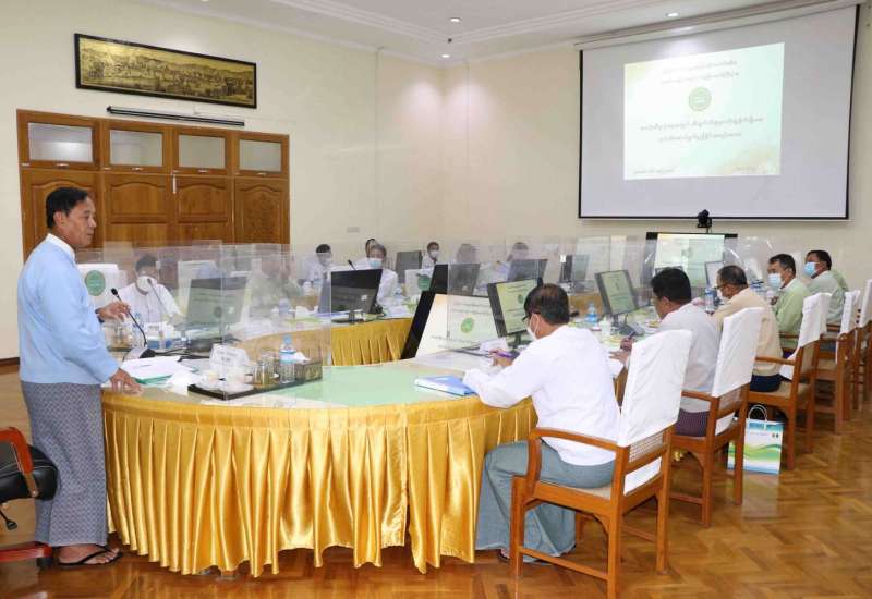 သမဝါယမနှင့်ကျေးလက်ဖွံ့ဖြိုးရေးဝန်ကြီးဌာန ပြည်ထောင်စုဝန်ကြီး ဦးလှမိုးသည် ယနေ့နံနက်ပိုင်းက ဝန်ကြီးဌာန၊ စုပေါင်းအစည်းအဝေးခန်းမ၌ကျင်းပသော သမဝါယမကဏ္ဍမှဆောင်ရွက်မည့် ကန်ထရိုက်လယ်ယာစနစ်ဖြင့် စပါး/ ပဲတီစိမ်းစိုက်ပျိုးထုတ်လုပ်ခြင်း အစည်းအဝေးသို့ တက်ရောက်သည်။