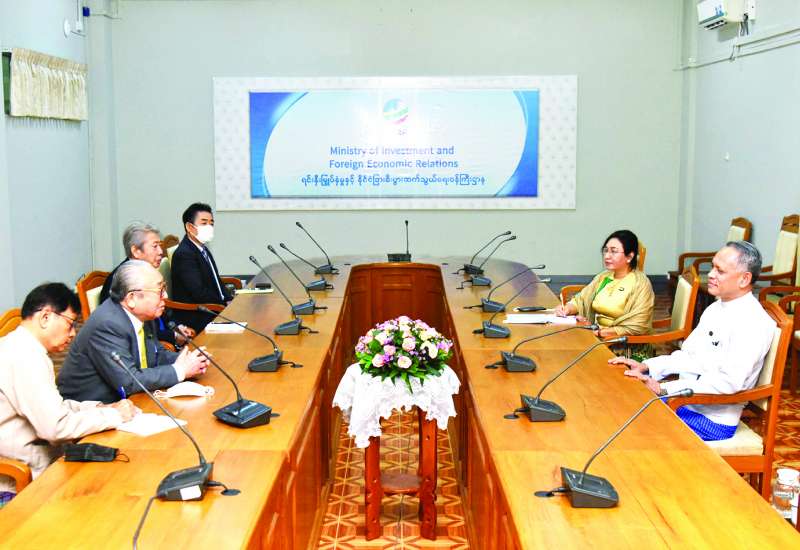ရင်းနှီးမြှုပ်နှံမှုနှင့် နိုင်ငံခြားစီးပွားဆက်သွယ်ရေးဝန်ကြီးဌာန ပြည်ထောင်စုဝန်ကြီး ဦးအောင်နိုင်ဦးသည် ဂျပန်-မြန်မာအသင်းဥက္ကဋ္ဌ မစ္စတာ ဝါတာနာဘေး ဟိဒဲအို ဦးဆောင်သည့် ကိုယ်စားလှယ်အဖွဲ့အား ယနေ့ နံနက်ပိုင်းတွင် နေပြည်တော်၌ လက်ခံတွေ့ဆုံသည်။