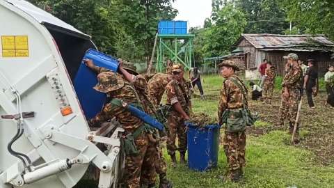 ကျိုင်းတုံမြို့နယ်၊ ကတ်ဖကျေးရွာ အခြေခံပညာအထက်တန်းကျောင်းခွဲတွင် စုပေါင်းသန့်ရှင်းရေးဆောင်ရွက်