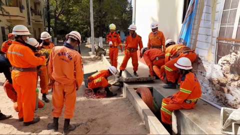 မီးသတ်ဦးစီးဌာနမှ ငလျင်ဘေးဒဏ်ကူညီကယ်ဆယ်ရေး လုပ်ငန်း ဇာတ်တိုက် လေ့ကျင့်ခြင်းဆောင်ရွက်