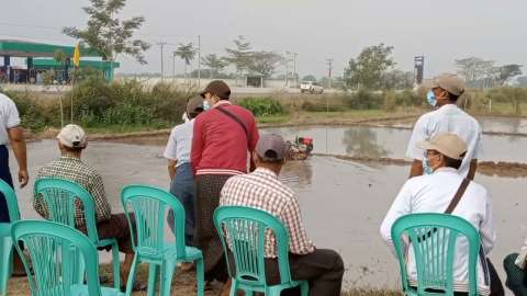 ဝေါမြို့နယ်၌ လက်ကိုင်ရှည် လက်တွန်းထွန်စက် လူထိုင်စီး၍ သမန်းမွှေကိရိယာဖြင့် ထွန်ယက်ခြင်း သရုပ်ပြပွဲကျင်းပ