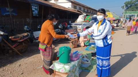 ကျေးသီးမြို့၌ (၇၅)နှစ်မြောက် စိန်ရတုပြည်ထောင်စုနေ့ အထိမ်းအမှတ် သတင်းစကား လက်ကမ်းစာစောင်များ အခမဲ့ဖြန့်ဝေ