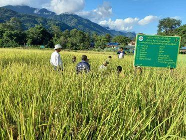 ချီဖွေမြို့နယ်အတွင်းစီးပွားရေးကုစားမှု (CERP) အစီအစဉ်ဖြင့် စိုက်ပျိုးထားသော မိုးစပါး မျိုးစေ့ထုတ် စိုက်ခင်း စံပြကွက် ရိတ်သိမ်း