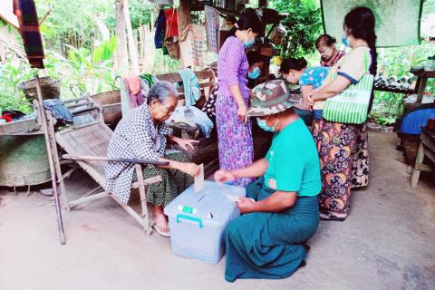 မိုးမောက်မြို့နယ်၌ အသက် (၆၀) နှစ် အထက်ရှိသူများနှင့် ရွေးကောက်ပွဲ တာဝန်ထမ်းဆောင်မည့် ဝန်ထမ်းများ ကြိုတင်ဆန္ဒမဲပေး