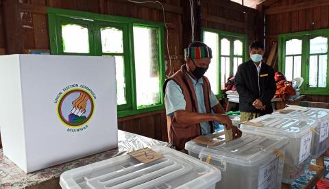 ကချင်ပြည်နယ်၊ ပူတာအိုမြို့နယ်တွင် ၂၀၂၀ ပြည့်နှစ် နို၀င်ဘာ(၈)ရက်နေ့တွင် ကျင်းပမည့် ပါတီစုံဒီမိုကရေစီ အထွေထွေရွေးကောက်ပွဲအတွက် မဲဆန္ဒနယ်ပြင်ပရောက်သူများက ပုံစံ(၁၅)ဖြင့် ကြိုတင်မဲပေးနိုင်ရန် တောင်းဆိုထားသူများမှ မဲဆန္ဒရှင်ပြည်သူများ၏ ကြိုတင်ဆန္ဒမဲ ရောက်ရှိလာသူများအား အများရှေ့မှောက်တွင် ချိတ်ပိတ်ခြင်းလုပ်ငန်းကို ယမန်နေ့ နံနက်(၁၀)နာရီက ခရိုင်အထွေထွေရွေးကောက်ပွဲကော်မရှင်အဖွဲ့ခွဲ အစည်းအဝေးခန်းမ၌ ဆောင်ရွက်ခဲ့ကြသည်။