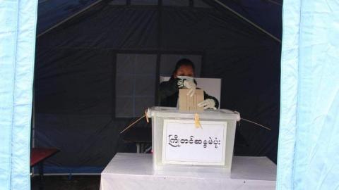 ဗန်းမော်မြို့၌ ကြိုတင်မဲဆန္ဒရှင် (၆၈) ဦး၏ ကြိုတင်ဆန္ဒမဲလက်မှတ်များ ကြိုတင်ဆန္ဒမဲပုံးထဲသို့ ဖြည့်သွင်း