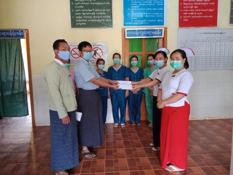 ကိုဗစ်- ၁၉ရောဂါဖြစ်ပွားရာနေရာများသို့ သွားရောက်တာဝန်ထမ်းဆောင်မည့် ကျန်းမာရေးဝန်ထမ်းများ အား ဂုဏ်ပြုထောက်ပံ့ငွေပေးအပ်