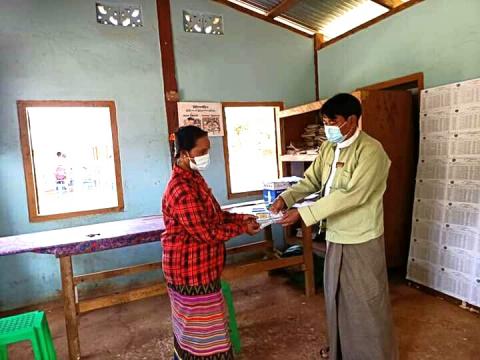 ခေါင်လန်ဖူးမြို့နယ် ရခီဖူးကျေးရွာတွင် ကိုဗစ်-၁၉ ရောဂါ ကြိုတင်ကာကွယ်ရေးအတွက် ကျန်းမာရေးစောင့်ရှောက် မှုပေးခြင်းနှင့် နှာခေါင်းစည်းများဖြန့်ဝေ