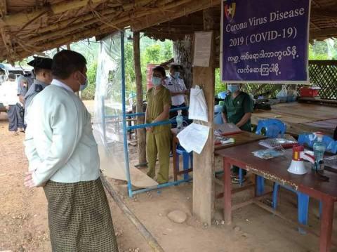 ရွာသစ်မြို့တွင် ကိုဗစ်-၁၉ ရောဂါ ကာကွယ်ထိန်းချုပ်ရေးလုပ်ငန်းများ ဆောင်ရွက်နေသည့် နယ်စပ် ပူးပေါင်းစစ်ဆေးရေးဂိတ်သို့ ခရိုင်အုပ်ချုပ်ရေးမှူး ကွင်းဆင်းကြည့်ရှုစစ်ဆေး