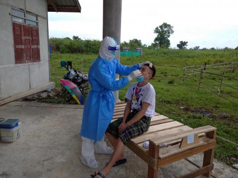 တနိုင်းမြို့နယ်၌ ပြည်ပနှင့်ပြည်တွင်းရှိ အခြားမြို့နယ်များမှ ပြန်လာသူများ၏ ဓာတ်ခွဲနမူနာများ ရယူကာ သီးသန့်စောင့်ကြည့်နေရာများတွင် ကန့်သတ်ထားရှိ