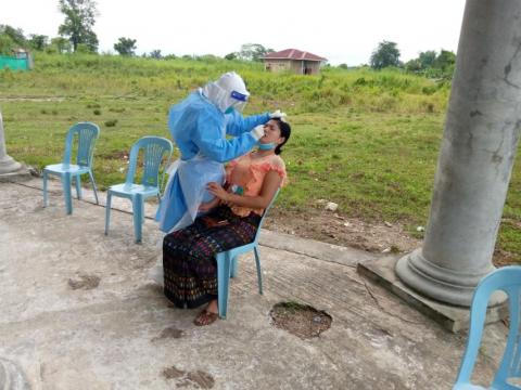 ကချင်ပြည်နယ်၊ မြစ်ကြီးနားခရိုင်၊ တနိုင်းမြို့နယ်တွင် သြဂုတ်လ(၃၀)ရက်နေ့တွင် ပြည်ပမှ နေရပ်သို့ ပြန်လည် ရောက်ရှိလာသူ (၆)ဦးနှင့် သြဂုတ်လ(၃၁) ရက်နေ့တွင် ရန်ကုန်မှ ပြန်လည်ရောက်ရှိလာသူ (၁)ဦးတို့အား ကိုဗစ်-၁၉ရောဂါ ရှိ/မရှိ စောင့်ကြည့်စစ်ဆေးရန်အတွက် မြို့နယ်မနောကွင်း အတွင်းရှိ ခန်းမ၌ (၂၁)ရက် ကန့်သတ်ထားရှိကာ ကိုဗစ်-၁၉ရောဂါ ရှိ /မရှိ ဓာတ်ခွဲအတည်ပြု နိုင်ရေးအတွက် နှာခေါင်းတို့ဖတ်၊ အာခေါင်တို့ဖတ်တို့ရယူ စစ်ဆေးခြင်းကို ယမန်နေ့ နံနက် ၁၀ နာရီက ဆောင်ရွက်ခဲ့သည်။
