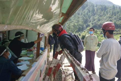 ထန်တလန်မြို့အ၀င် လိုင်ပေါင်းလုံဂိတ်၌ ကိုဗစ်-၁၉ ရောဂါ ကာကွယ်ထိန်းချုပ်ရေး ကျန်းမာရေး စစ်ဆေးခြင်းလုပ်ငန်းများ အရှိန်အဟုန်မြှင့်ဆောင်ရွက်