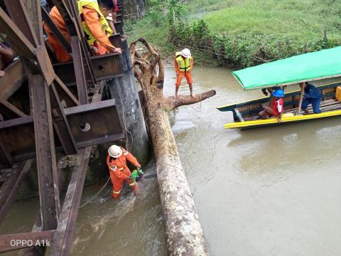 ရှင်ဗွေယန် ချောင်းတံတားအောက်တွင် သစ်တုံးများ ကန့်လန့်ဖြတ် တင်ကျန်နေမှုအား ဖယ်ရှား ရှင်းလင်းခြင်းဆောင်ရွက်