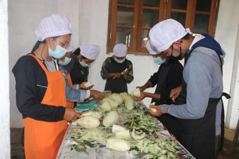 ချင်းပြည်နယ် အသေးစား စက်မှုလက်မှု လုပ်ငန်းဦးစီးဌာနမှ ကိုဗစ် - ၁၉ စီးပွားရေးကုစားမှု အစီအစဉ်ဖြင့် စားသောက်ကုန် လက်တွေ့လုပ်ငန်းခွင် သင်တန်းကို သြဂုတ်လ ၁၇ ရက်နေ့တွင် ဟားခါး မြို့ စျေးသစ်ရပ်ကွက် ကာရာနီနှစ်ခြင်းအသင်း တော်ခန်းမ၌ စတင်ဖွင့်လှစ်သင်ကြားပေးလျက်ရှိရာ ယနေ့နံနက်တွင်သင်္ဘောသီးယို ပြုလုပ်နည်းများ သင်ကြားပို့ချလျက်ရှိကြောင်း သိရသည်။