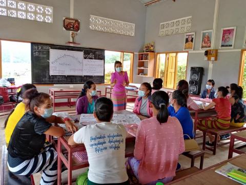 မိုင်းငေါ့မြို့ ကွန်ကောက်ကျေးရွာတွင် စီမံချက်ဝန်ထမ်းများဦးဆောင်သော မိခင်ခေါင်းဆောင် လစဉ်ပုံမှန် ဆွေးနွေးပွဲ ကျင်းပ