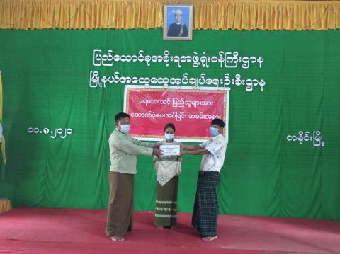 နောင်မွန်မြို့နယ်၌ ကိုဗစ်-၁၉ ကာလ ပုံမှန်ဝင်ငွေမရှိသော အခြေခံလူတန်းစားများအား ထောက်ပံ့ငွေ ပေးအပ်