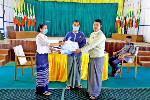 ပွင့်ဖြူမြို့နယ်အတွင်း COVID – 19 ရောဂါ ကာကွယ်ထိန်းချုပ်ကုသရေးလုပ်ငန်းများ ဆောင်ရွက်ရာတွင် အသုံးပြုနိုင်ရေး နှာခေါင်းစည်း (Mask) ၁၅၀၀ ထောက်ပံ့ပေးအပ်