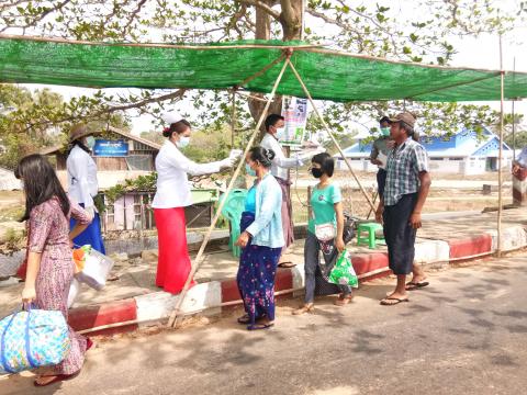 ကရင်ပြည်နယ်၊ ကော့ကရိတ်ခရိုင်၊ ဘုရားသုံးဆူမြို့၊ မြို့ပေါ်ရပ်ကွက်(၄)ခုရှိ ထိုင်းနိုင်ငံမှပြန် လာသော နေရပ်ပြန်အလုပ်သမားများအား ဘုရားသုံးဆူမြို့ ကျေးလက်ကျန်းမာရေးဌာနဝန်ထမ်းများမှ အိမ်တိုင်ရာ ရောက် ကျန်းမာရေး စစ်ဆေးခြင်း၊ အပူချိန်တိုင်းကရိယာဖြင့်