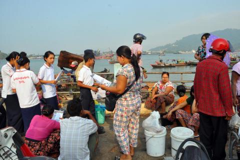 ကမ္ဘာနိုင်ငံအသီးသီး၌ ကူးစက်မှုများဖြစ်ပွားနေသော Covid-19 ဗိုင်းရပ်စ် ကြိုတင်ကာကွယ်သည့် ပညာ ပေးလက်ကမ်းစာစောင်များကို မြိတ်မြို့နယ် ကြက်ခြေနီသူနာပြုတပ်ဖွဲ့မှ ပြည်သူများ နေ့စဉ်လှုပ်ရှားသွားလာ လျက်ရှိသော နေရာများတွင် ဖြန့်ဝေလျက်ရှိရာ ယနေ့ နံနက်ပိုင်းက ကမ်းနားလမ်းနှင့် တံတားများတွင် သွားလာလျက်ရှိသော ပြည်သူများနှင့် ခရီးသွားပြည်သူများအား လက်ကမ်းစာစောင်များ ဖြန့်ဝေပေးခဲ့ကြသည်။