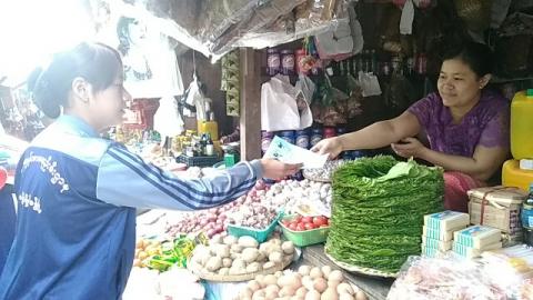 ခန္တီးမြို့ မင်္ဂလာဈေး၌ COVID-19 ရောဂါ ကြိုတင်ကာကွယ်ရေး အသိပညာပေး လက်ကမ်း စာစောင်များ ဖြန့်ဝေ