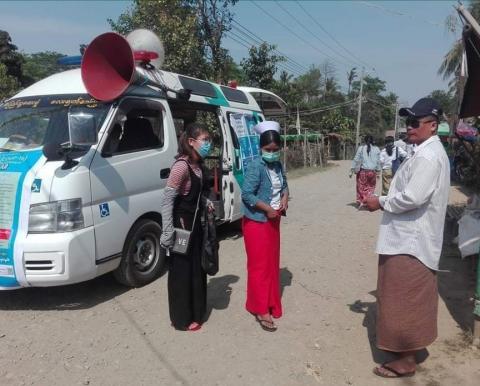 အသက်ရှုလမ်းကြောင်းဆိုင်ရာ (Covid-19) အဆုတ်ရောင်ရောဂါအား ကြိုတင်ကာကွယ်နိုင်ရန် နည်းလမ်းများနှင့် အဆိုပါရောဂါနှင့် ပတ်သက်သည့် အသိပညာပေးလက်ကမ်းစာစောင်များ ဖြန့်ဝေခြင်းကို ဟင်္သာတခရိုင်၊ လေးမျက်နှာမြို့နယ် ပြည်သူ့ကျန်းမာရေး/ကုသရေးဦးစီးဌာနမှ ဝန်ထမ်းများက ယမန်နေ့ မွန်းလွဲ ၂ နာရီမှ စတင်၍ မြို့ပေါ် ရပ်ကွက်နှင့် ကျေးရွာများအရောက် လိုက်လံနှိုးဆော်ပေးလျက်ရှိကြောင်း သိရသည်။