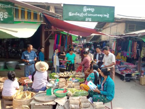 မြိုင်မြို့စည်ပင်သာယာဈေးတွင် ယနေ့ နံနက် ၈ နာရီခွဲအချိန်က ကမ္ဘာ့စားသုံးသူ အခွင့်အရေးများနေ့ အထိမ်းအမှတ်အဖြစ် စီးပွားရေးနှင့်ကူးသန်းရောင်းဝယ်ရေး ဝန်ကြီးဌာန စားသုံးသူဦးစီးဌာနက ထုတ်ဝေသော စားသုံးသူအခွင့်အရေးများနှင့် ပြန်လည်ကုစားခြင်းဆိုင်ရာ အချက် ၈ ချက်ပါ ပညာပေး လက်ကမ်းစာစောင်များကို မြို့နယ်စားသုံးသူရေးရာ ဦးစီးဌာနမှ တာဝန်ခံဦးဇော်ထွန်းဦး၊ မြို့နယ်စည်ပင်သာယာရေးအဖွဲ့ မြို့မဈေးတာဝန်ခံ ဦးဘိုဝင်းနှင့် မြို့မဈေးကော်မတီဥက္ကဋ္ဌ ဦးအောင်ဌေးတို့မှပြည်သူများ လက်ဝယ်အရောက် ဖြန့်ဝေခြင်း၍ စားသုံးပြည်သူများ သိသင့်သိထိုက်သည့် အခွင့်အရေးများအကြောင်းနှင့် ပြန်လည်ကုစားခြင်းများ အကြောင်းတို့ကို စားသုံးသူရေးရာဦးစီးမှူး မြို့နယ်တာဝန်ခံ ဦးဇော်ထွန်းဦးက ရှင်းလင်း ပြောကြားခဲ့ကြောင်း သိရသည်။