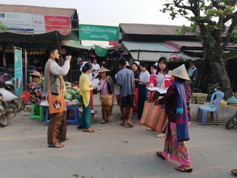 လက်ပံတန်း မြို့မဈေးတွင် ကမ္ဘာ့စားသုံးသူ အခွင့်အရေးများနေ့ အထိမ်းအမှတ် လက်ကမ်း စာစောင်များ ဖြန့်ဝေ