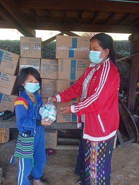 ဆွမ်ပရာဘွမ်မြို့နယ်၌ kg တန်းမှ စတုတ္ထတန်းအထိ အာဟာရမုန့်များဖြန့်ဝေပေး