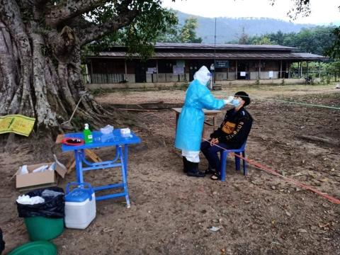 မိုင်းယုမြို့၌ တာချီလိတ်မှပြန်လည်ဝင်ရောက်လာသူဒေသခံ (၈) ဦး အား Quarantine ထားရှိ၍ ကိုဗစ်-၁၉ ရောဂါ Antigen (RDT)Test Kit ဖြင့် စစ်ဆေးရာ ပိုးမတွေ့