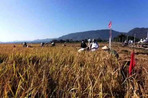 နန်းမယ်ခုံမြို့တွင် မိုးစပါးမျိုးစေ့ထုတ် စိုက်ခင်းစံကွက် ရိတ်သိမ်းခြင်းဆောင်ရွက်
