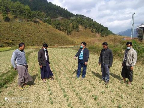 ချင်းပြည်နယ် ဟားခါးမြို့နယ်အတွင်း ဆောင်းသီးနှံစားတော်ပဲ စမ်းသပ်စိုက်ပျိုးရာ အပင်ထွက်ရှိလာမှု အခြေအနေများအား ပြည်နယ်စိုက်ပျိုးရေးဦးစီးဌာနမှ ဒုတိယပြည်နယ် ဦးစီးမှူးနှင့် တာဝန်ရှိသူများ ကွင်းဆင်းကြည့်ရှု