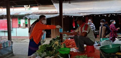 ကချင်ပြည်နယ်၊ ဗန်းမော်ခရိုင်၊ မံစီမြို့နယ်အတွင်းရှိ ပြည်သူများကို နေအိမ်ပြင်ပသို့ သွားလာပါက နှာခေါင်းစည်း (Mask)များ မဖြစ်မနေ တပ်ဆင်စေရေး အတွက် ယနေ့နံနက် ၇ နာရီက နှာခေါင်းစည်း (Mask)များ အခမဲ့ဖြန့်ဝေပြီး အသိပညာပေး နှိုးဆော်ခဲ့ကြသည်။
