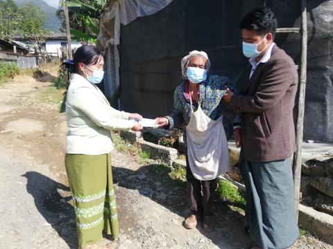 ရွာသစ်မြို့ ဝေးလံခေါင်ဖျား ကျေးရွာများသို့ ပုံမှန်၀င်ငွေမရှိသော အခြေခံလူတန်းစား အိမ်ထောင်စုများ အတွက် လက်၀ယ်အရောက် ထောက်ပံ့ငွေများ ပေးအပ်