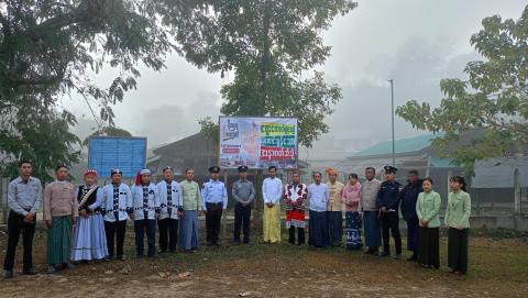 မချမ်းဘောမြို့၌ ရွေးကောက်ပွဲနှိုးဆော်ရေး “ဒို့အတူတူမဲပေးကြမယ်” မြေစိုက်ပိုစတာစိုက်ထူခြင်းနှင့် လက်ကမ်းစာစောင်များ ဖြန့်ဝေ