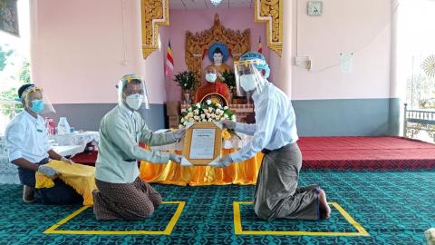 မံစီမြို့နယ်အတွင်း ကိုဗစ်-၁၉ရောဂါ ကာကွယ်ရေးနှင့် ကုသရေးလုပ်ငန်းတွင် အသုံးပြုနိုင်ရေးအတွက် ငွေကျပ်(၁၈၇၅၀၄၀၀)ကျပ် တန်ဖိုးရှိ အထောက်အကူပြု ပစ္စည်းများလှူဒါန်း