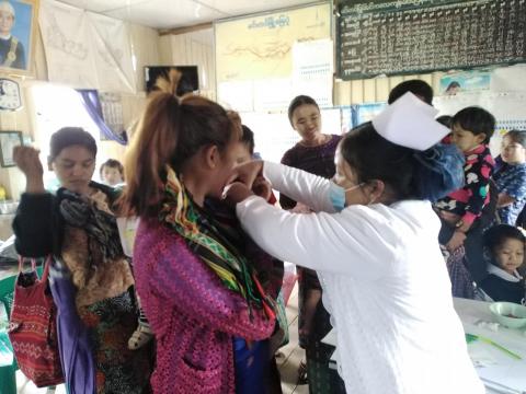 မင်းတပ်မြို့၌ အသက်ငါးနှစ်အောက်ကလေးငယ်များအား ဗီတာမင်အေနှင့် သန်ချဆေးတိုက်ကျွေး