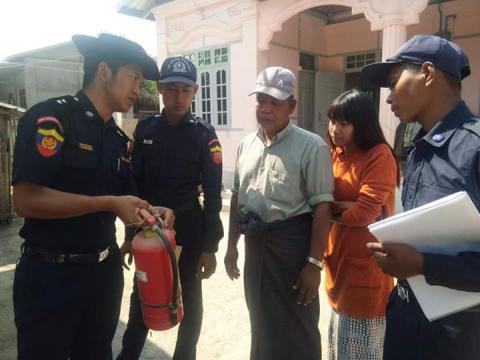 မီးဘေးသင့်နေအိမ်အား ထောက်ပံ့ငွေနှင့် အိမ်သုံးပစ္စည်းများ သွားရောက်ပေးအပ်