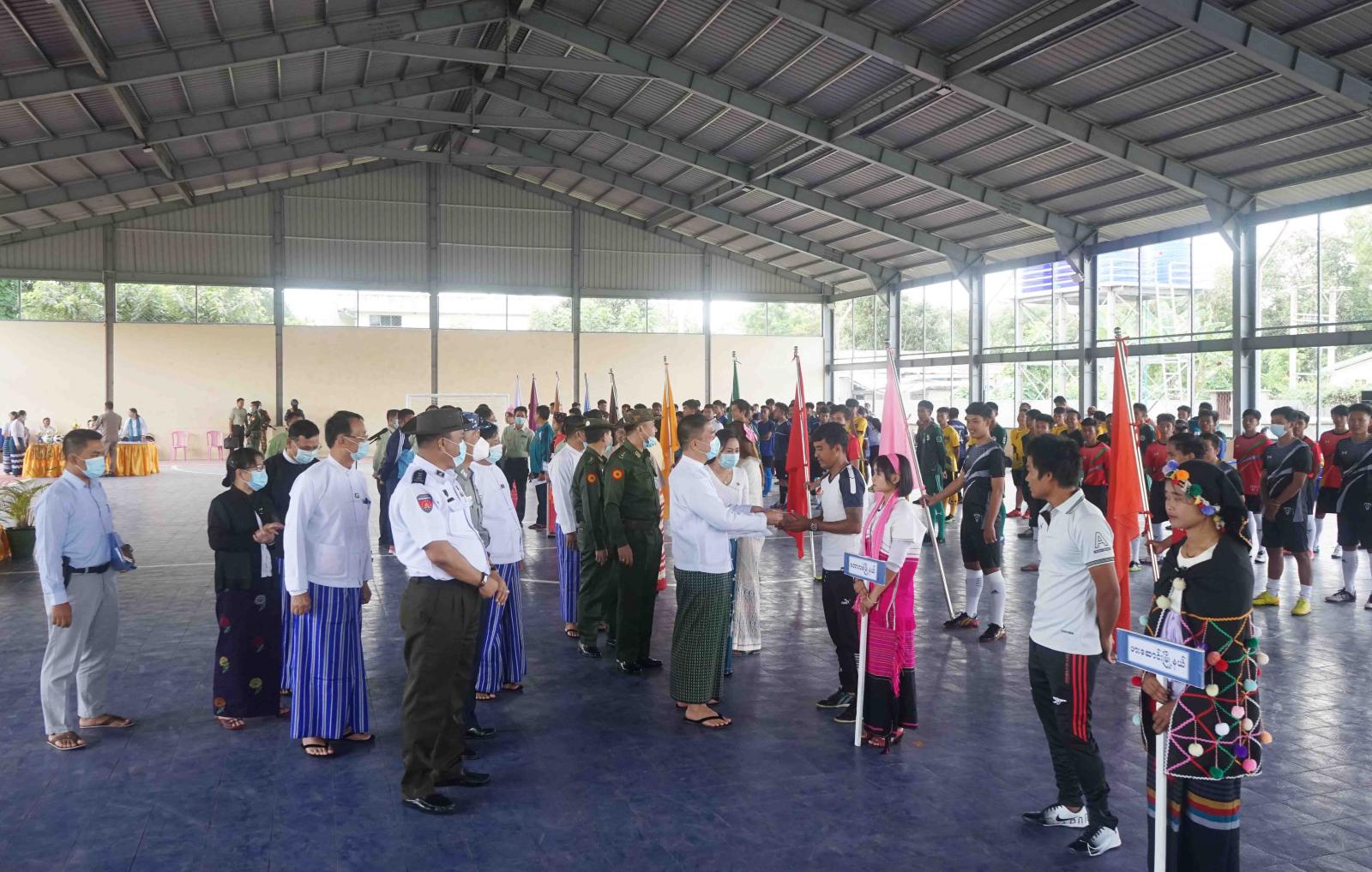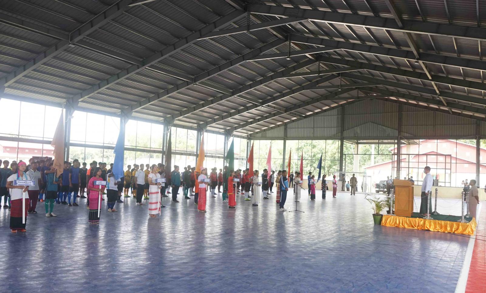 ထို့နောက် ပြိုင်ပွဲဝင်အားကစားသမားများက ကွင်းအတွင်းတွင် အားကစားသစ္စာအဓိဋ္ဌာန် ရွတ်ဆိုကြပြီး ပြည်နယ်ဝန်ကြီးချုပ်နှင့် တာဝန် ရှိသူများက ပြိုင်ပွဲဝင် ဖူဆယ်အားကစား အသင်းသားများအား ရင်းနှီးစွာလိုက်လံနှုတ်ဆက်ခဲ့ကာ ပြိုင်ပွဲဝင်အသင်းသားများ ယှဉ်ပြိုင်ကစားနေမှုများကို ကြည့်ရှုအားပေးခဲ့သည်။